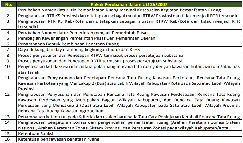 Pokok Perubahan dalam UU 26 Tahun 2007 tentang Penataan Ruang dengan dikeluarkannya UU Cipta Kerja