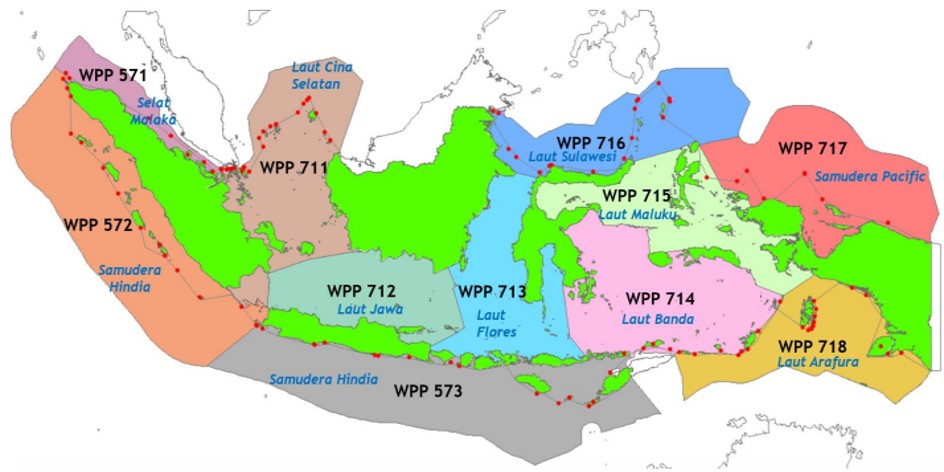 Berdasarkan Peraturan Menteri Kelautan dan Perikanan Nomor 18 Tahun 2014 tentang Wilayah Pengelolaan Perikanan Negara Republik Indonesia, wilayah perairan Indonesia terbagi menjadi 11 wilayah pengelolaan perikanan. Dasar penentuan wilayah pengelolaan perikanan mengacu pada kondisi fisik, ekologi dan oseanografi perairan Indonesia. Selain itu WPP RI dalam kodefikasinya juga mengacu pada kodefikasi Food and Agriculture Organization (FAO) untuk dapat digunakan secara regional dan internasional. Secara internasional, perairan untuk perikanan dibagi menjadi dua yaitu perairan umum dan perairan darat. Adapun yang menjadi dasar pertimbangan untuk pembagian kode statistic kawasan tersebut adalah sebagai berikut: