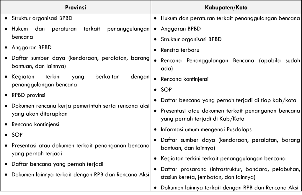 Sumber: Pedoman Teknis Penyusunan Rencana Penanggulangan Bencana Daerah untuk Kabupaten/Kota, 2015