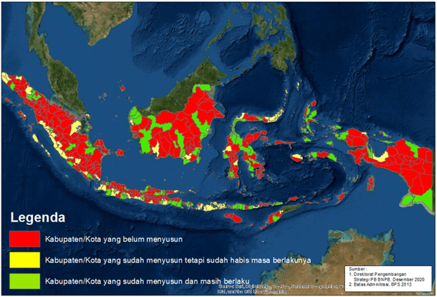 Berbagai jenis kejadian bencana yang kerap melanda Indonesia membuat seluruh pihak mengupayakan hal-hal yang dapat mengurangi risiko bencana tersebut. Hal ini pula yang mendasari pemerintah untuk membuat target agar Indonesia dapat menjadi negara yang Tangguh bencana pada 2045. Tahun tersebut dipilih untuk menandakan 100 tahun kemerdekaan Indonesia. Target ini juga dituangkan ke dalam Peraturan Presiden Nomor 87 Tahun 2020 tentang Rencana Induk Penanggulangan Bencana (RIPB) Tahun 2020-2044. RIPB tersebut dilaksanakan dalam bentuk rencana nasional penanggulangan bencana yang berlaku selama 5 tahun. Adapun substansi dokumen tersebut meliputi: